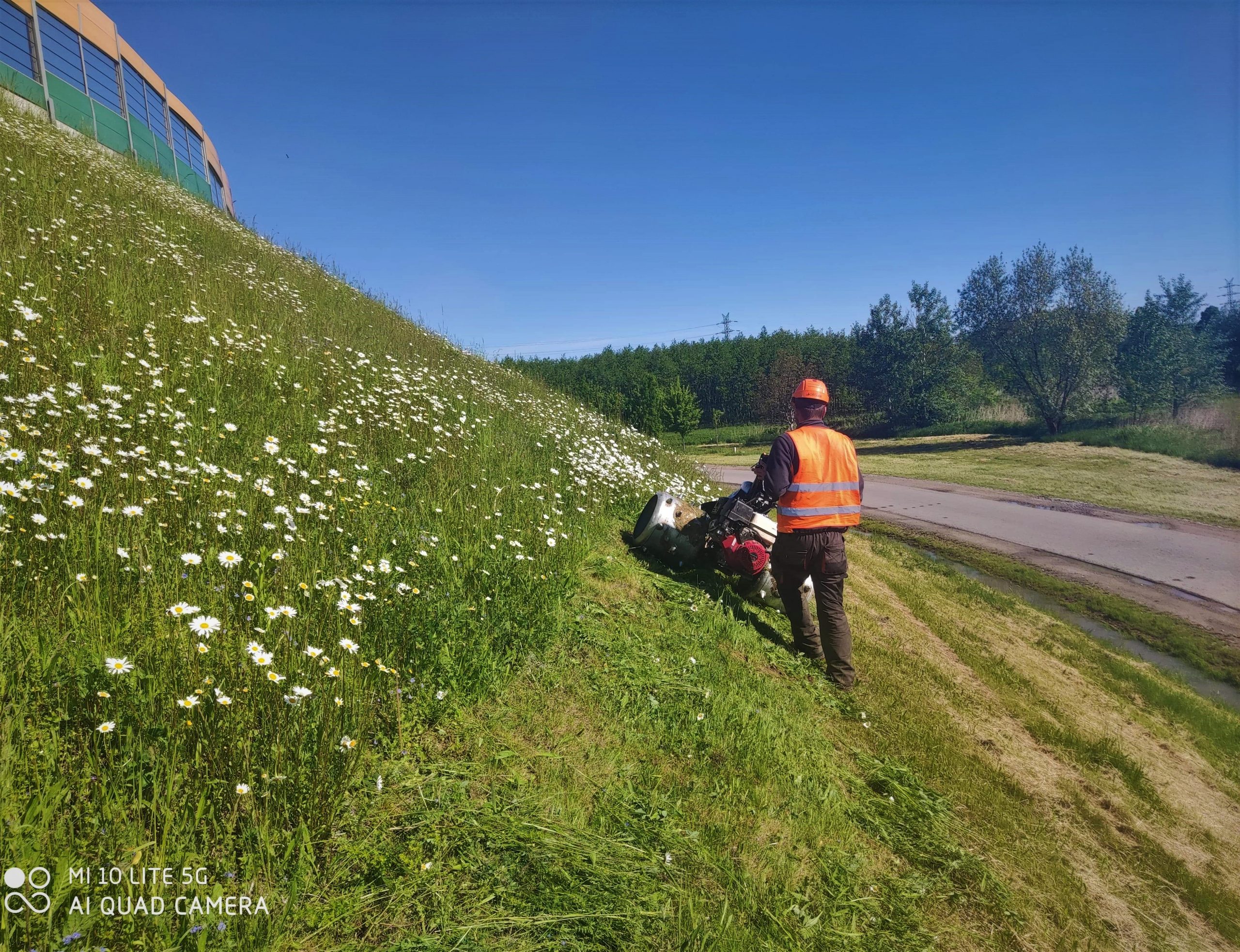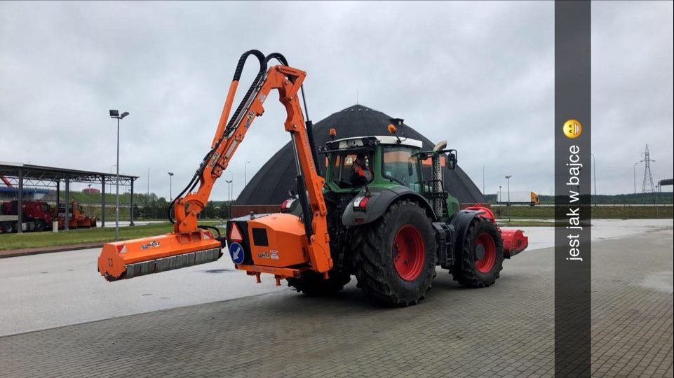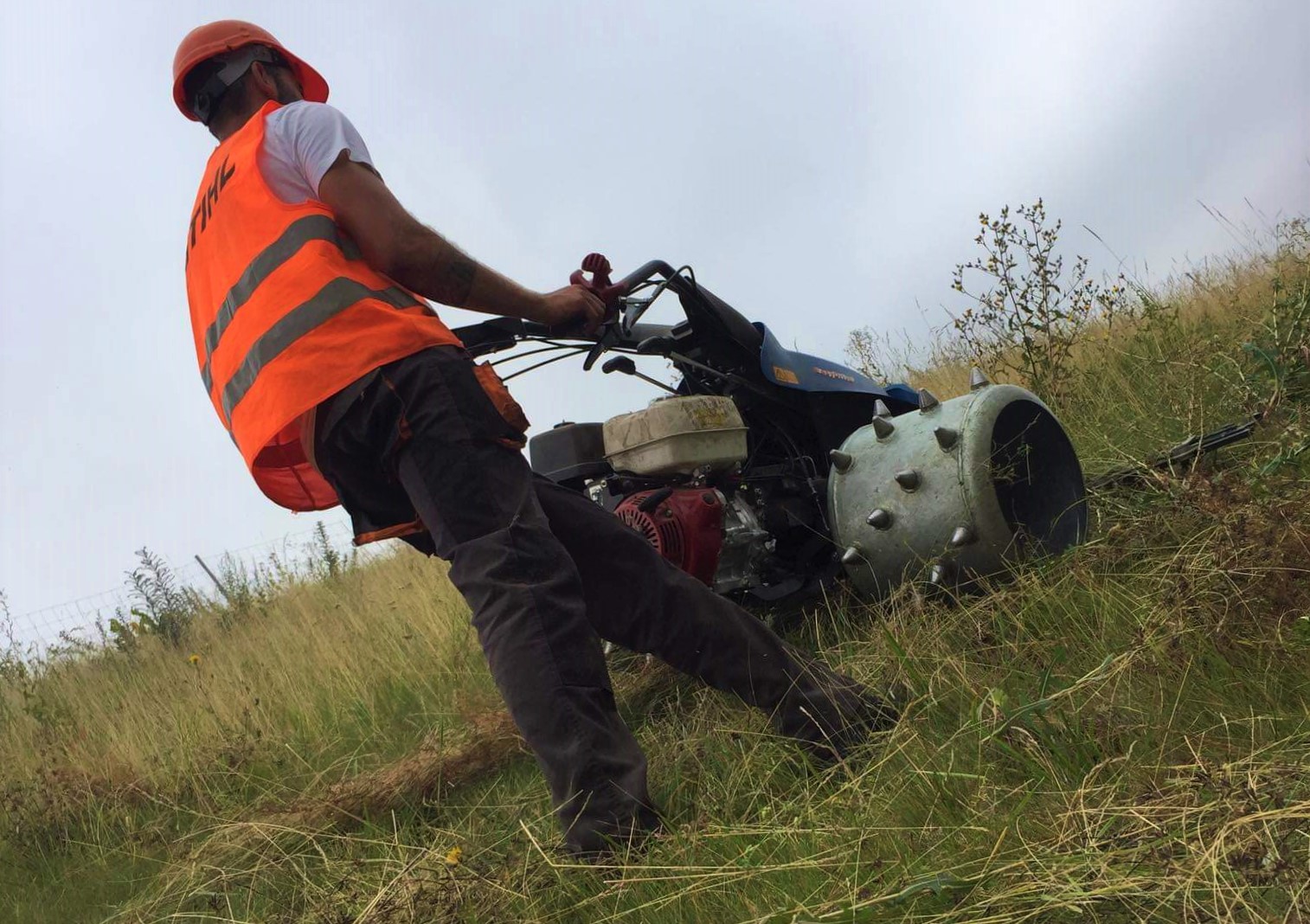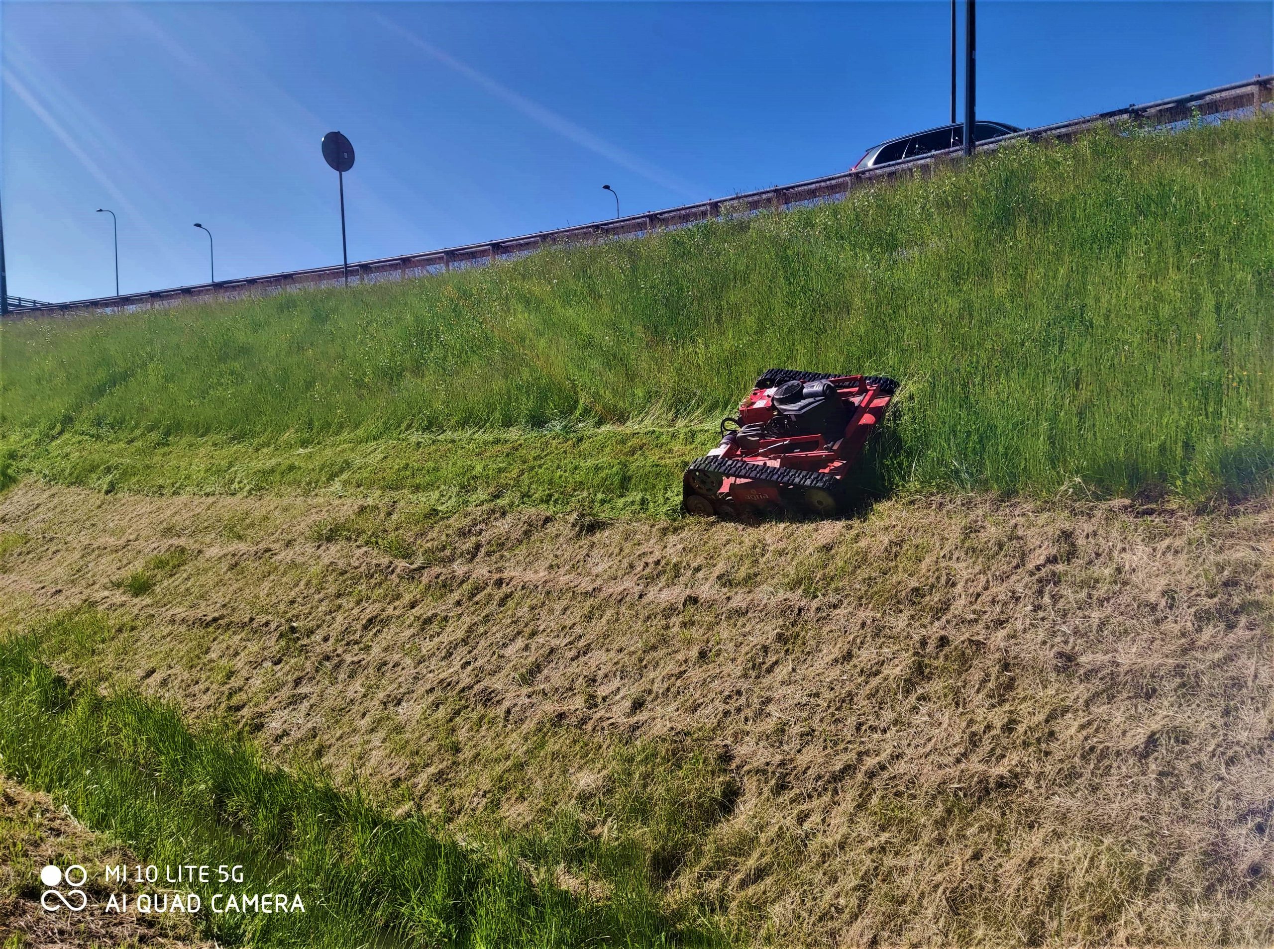 Maszyna ta bardzo dobrze sprawdza się w koszeniu wałów, stoków, zboczy i innych terenów o znacznym nachyleniu.