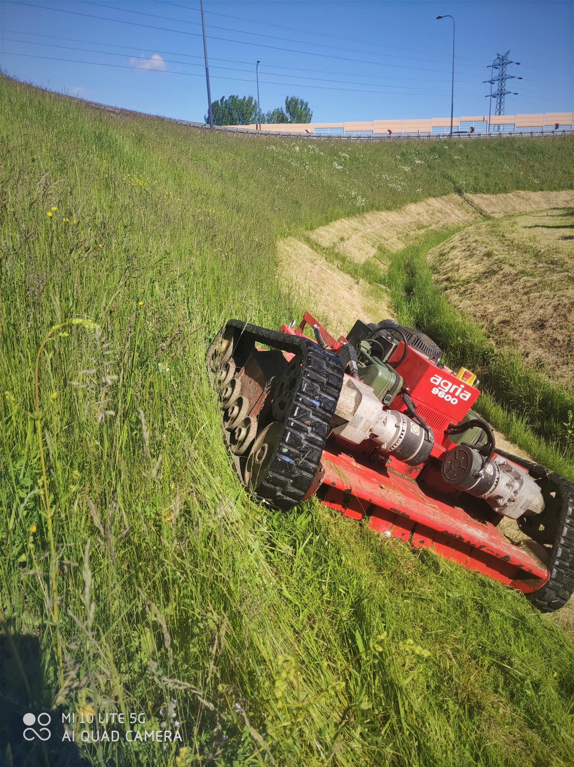 Agria 9600 to innowacyjna, zdalnie sterowana kosiarka mulczująca trawę przeznaczona głównie do koszenia poboczy i wysokich, stromych skarp.